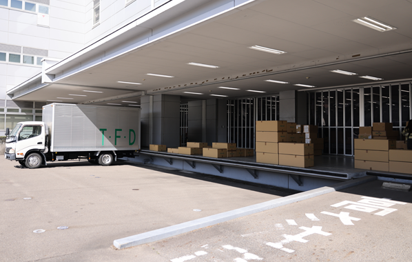 本社倉庫および南倉庫では、40フィートのコンテナを余裕で収納できる広大なプラットホームを有しています。