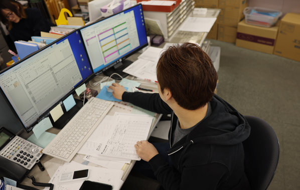 玉一商店の物流の特徴は、大量の商品をストックできる倉庫が複数あることです。そのことが、常に迅速にお客さまにいち早く商品をお届けできる理由でもあります。また、倉庫内でも徹底的に効率化を図り、ITシステムによる在庫管理や、マテハンシステムの導入によりシームレスな出荷を可能にしています。